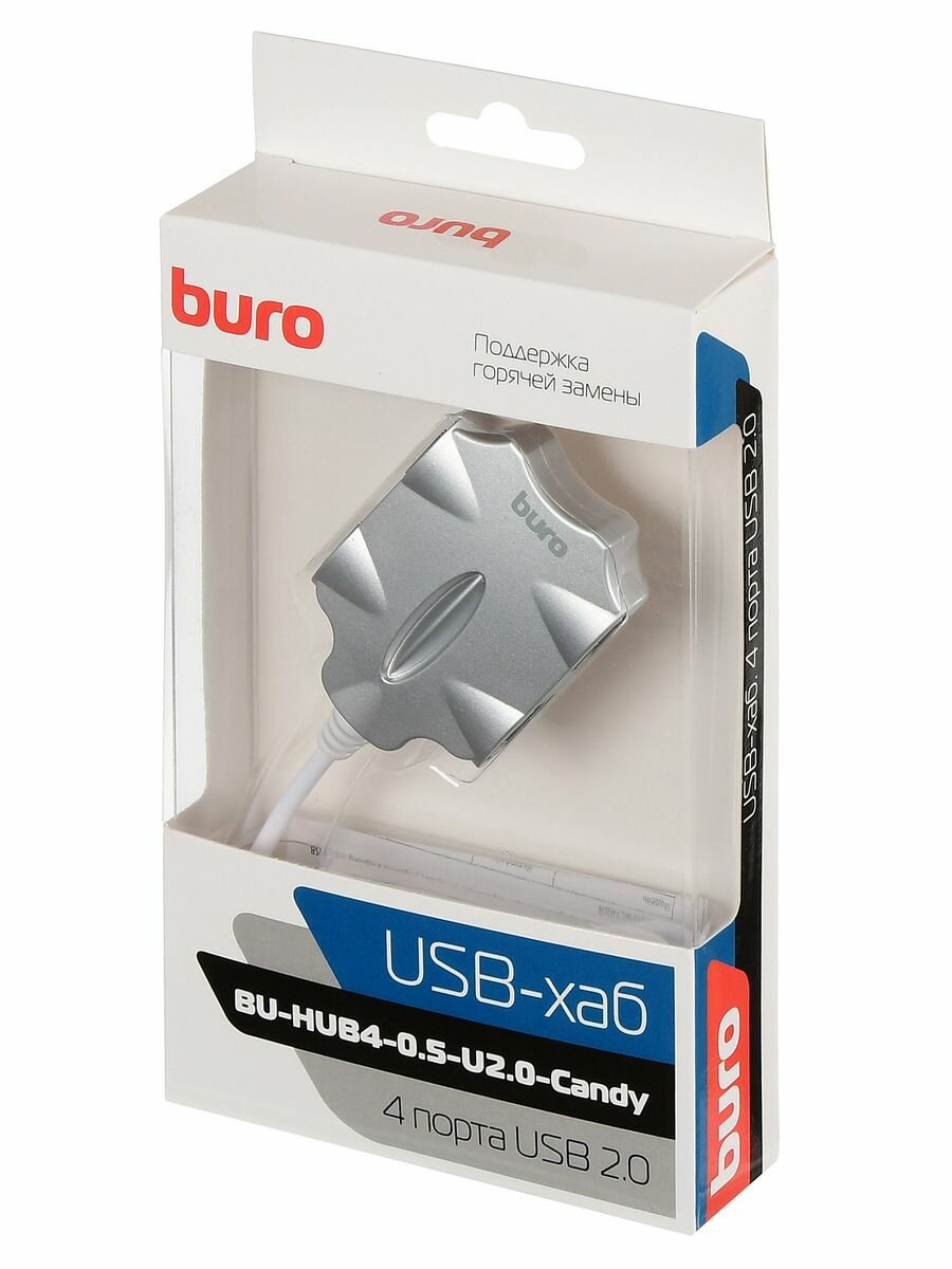 Buro Хаб (разветвитель) BURO BU-HUB4-0.5-U2.0-Candy, серебристый