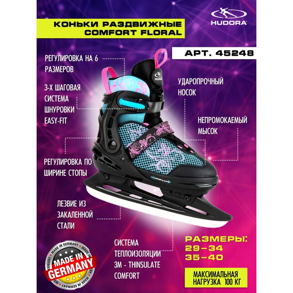 Коньки раздвижные HUDORA Comfort floral (размер 35-40 (45249))