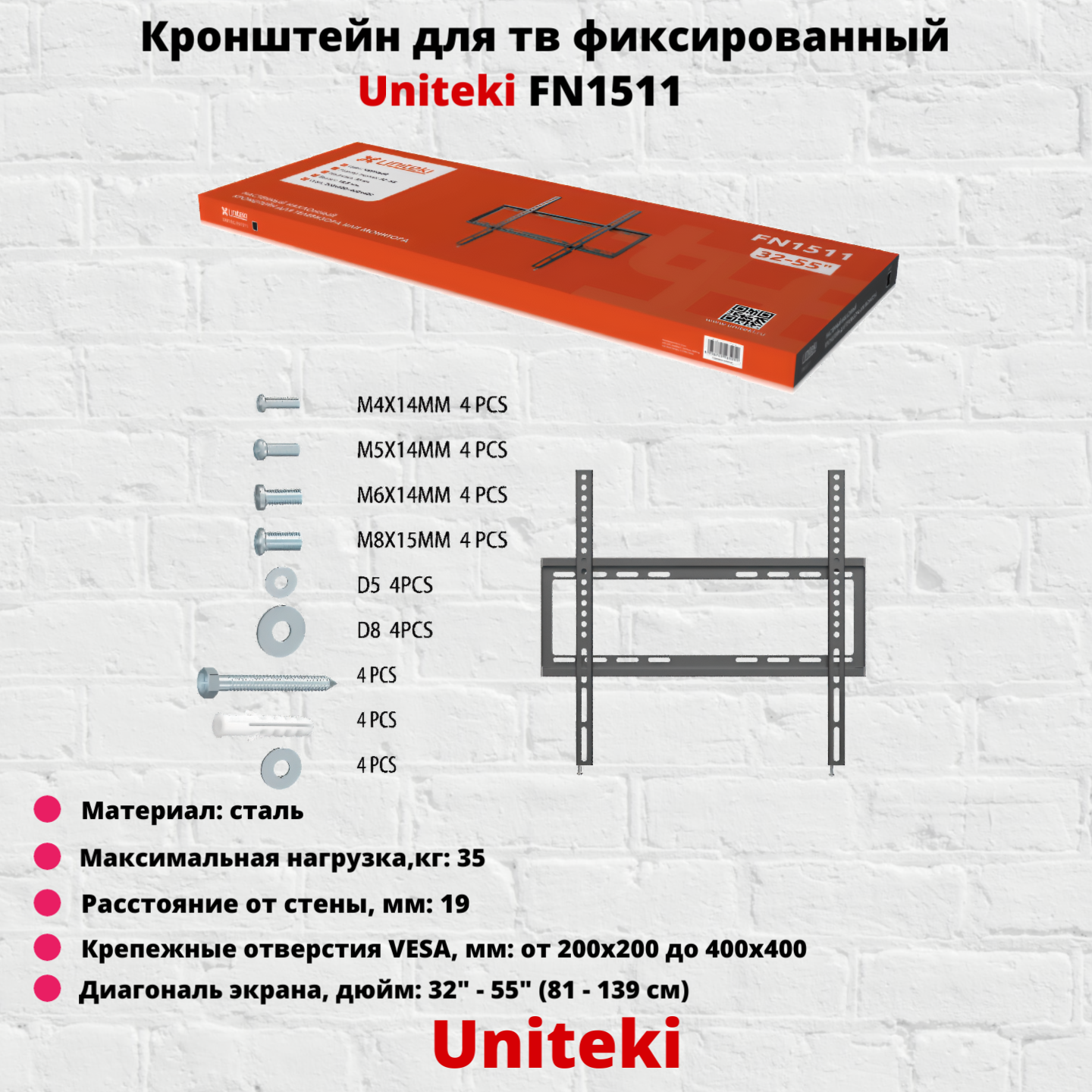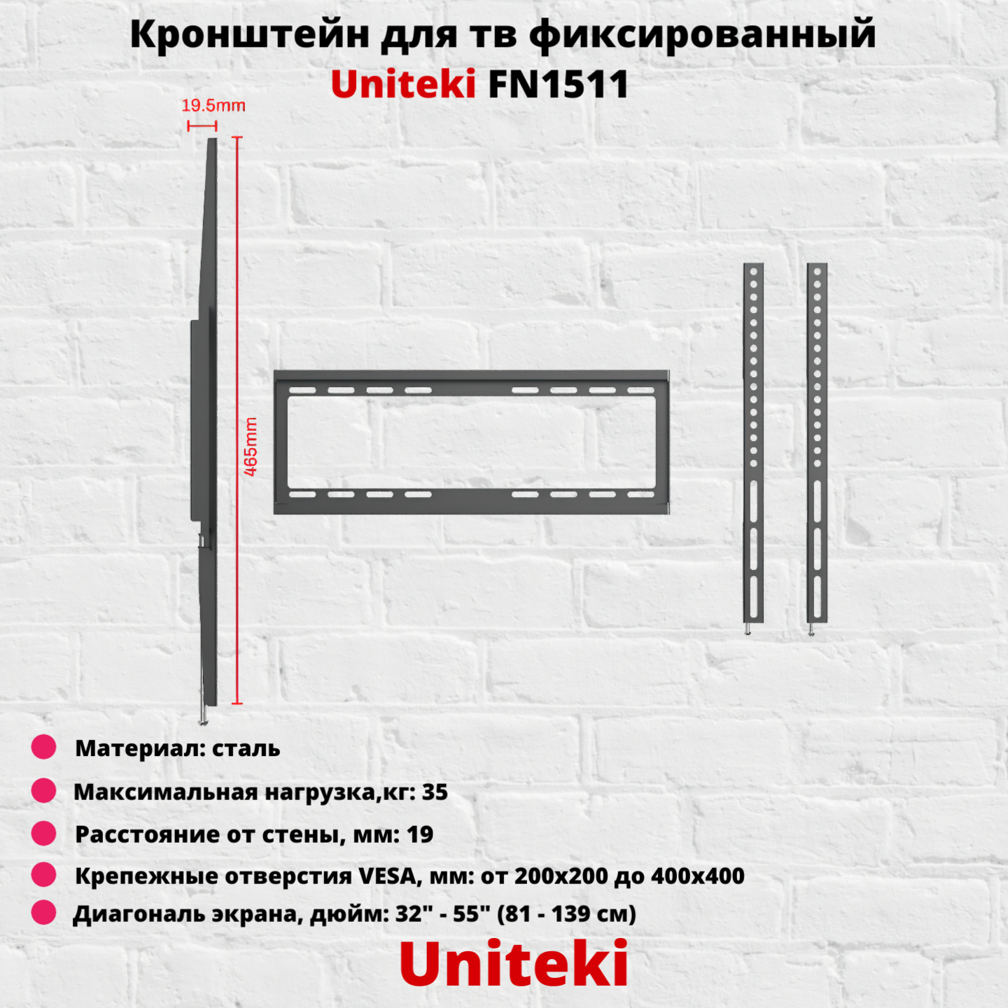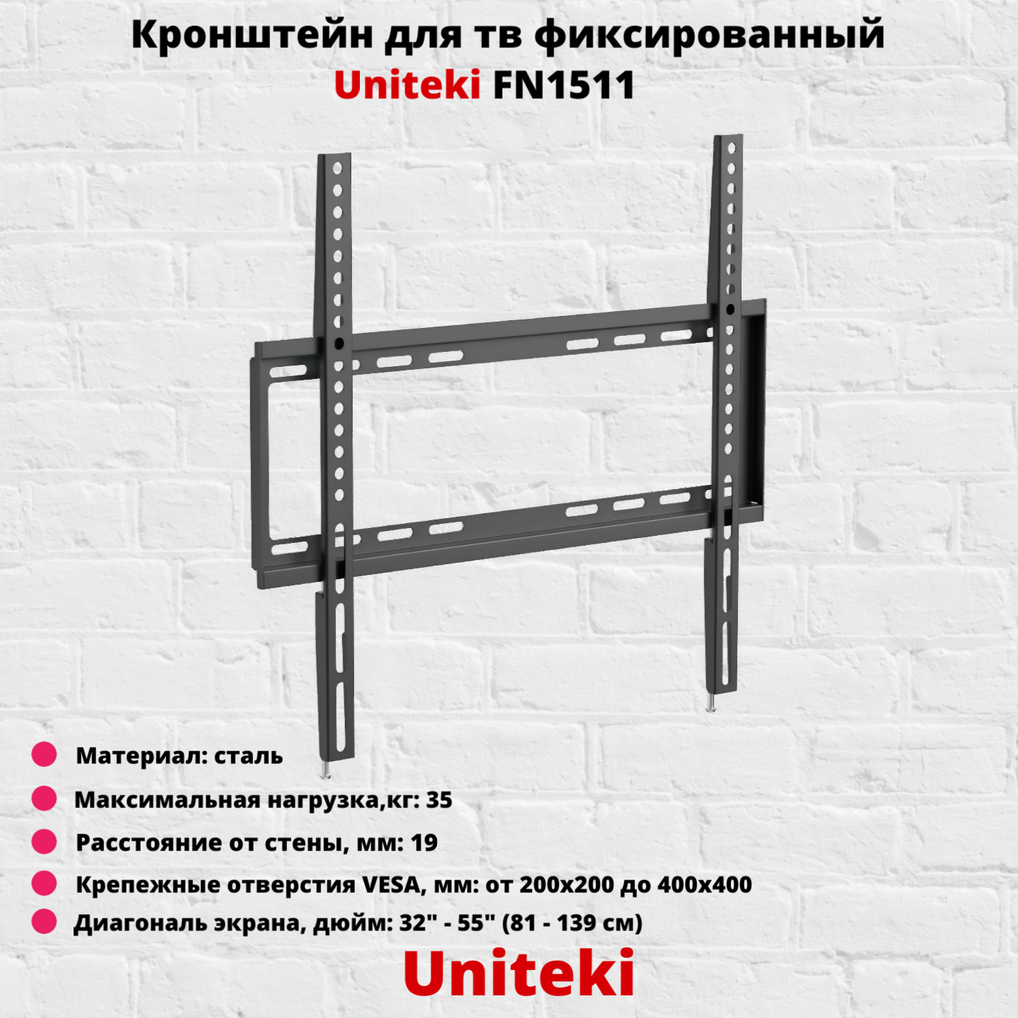 Купить Кронштейн UniTeki FN1511 для телевизора на стену фиксированный для диагонали от 32 до 55 дюймов (81-139 см), макс. нагрузка до 35 кг