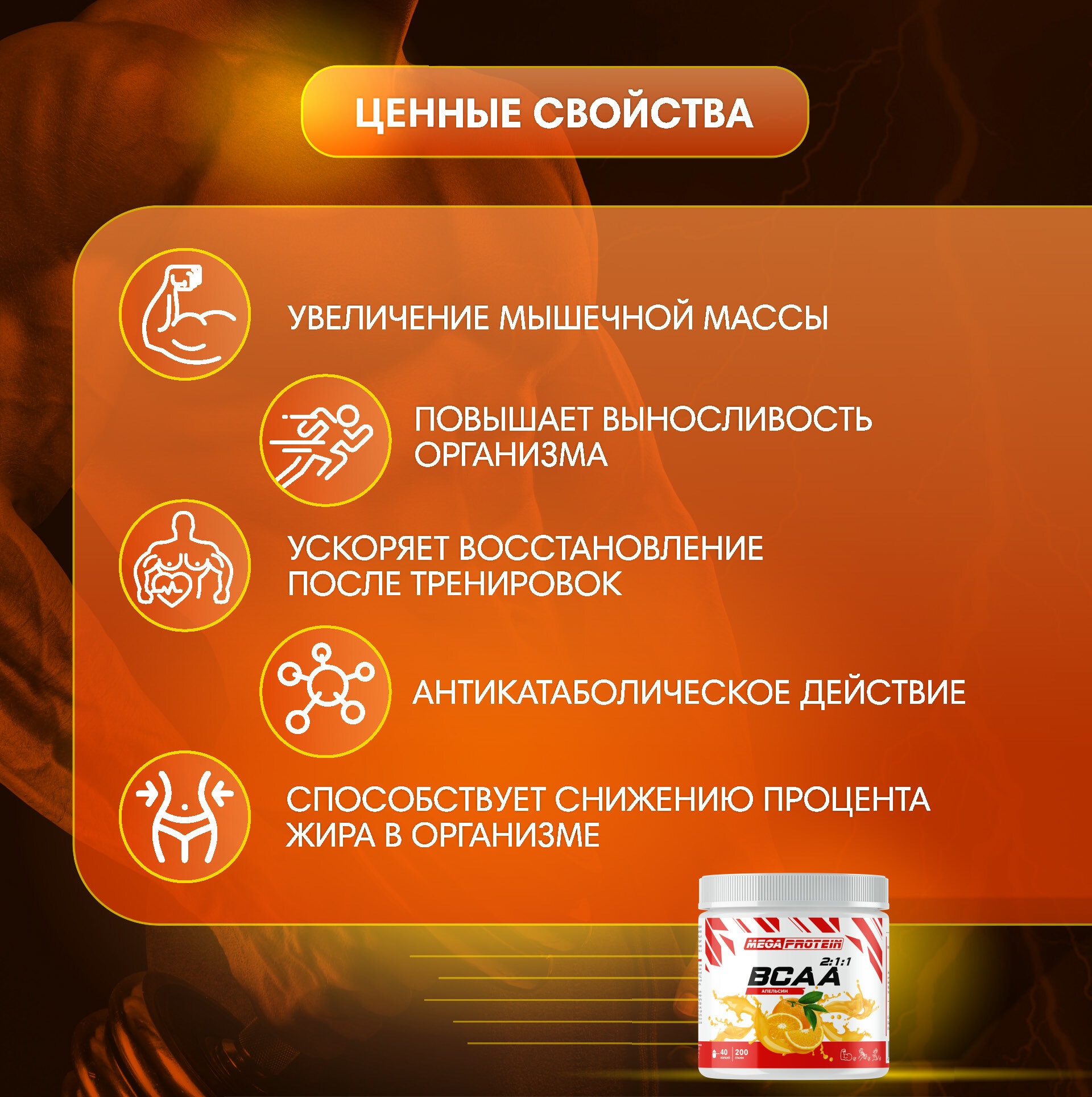 СохранитьАминокислоты BCAA спортивное питание порошок бцаа 200 гр Апельсин интересное: