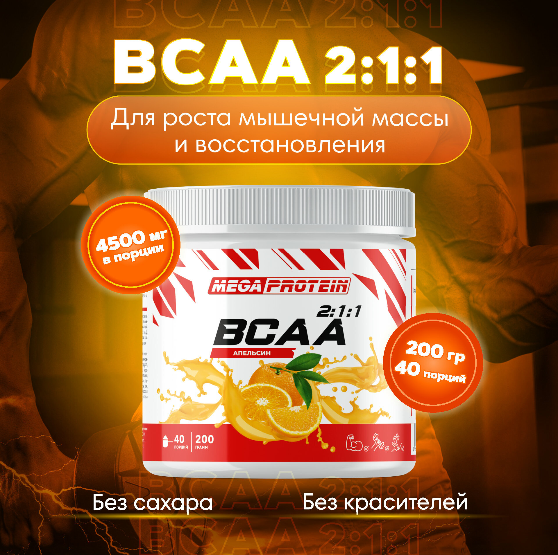 Аминокислоты BCAA порошок Megaprotein, бцаа, Натуральный вкус, 200 г