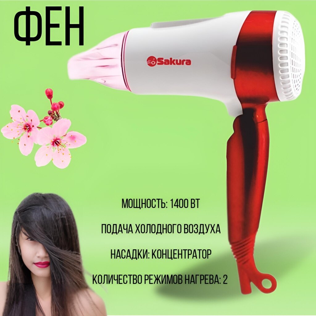 Фен для волос Sakura SA-4039WR, 1400Вт (OL) интересное: