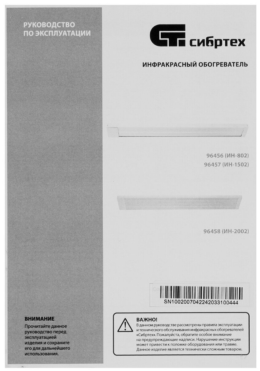 Сибртех Инфракрасный обогреватель ИН- 2002, 230В, 2000 Вт 96458 .
