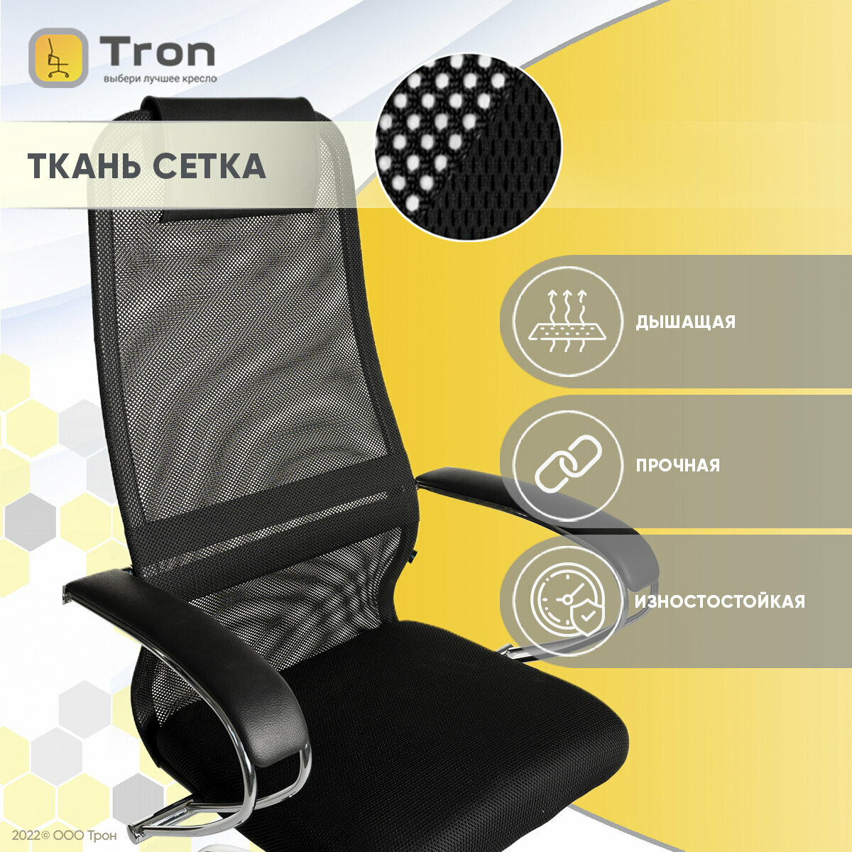 Кресло офисное метта "SU-B-8" хром, ткань-сетка, сиденье мягкое