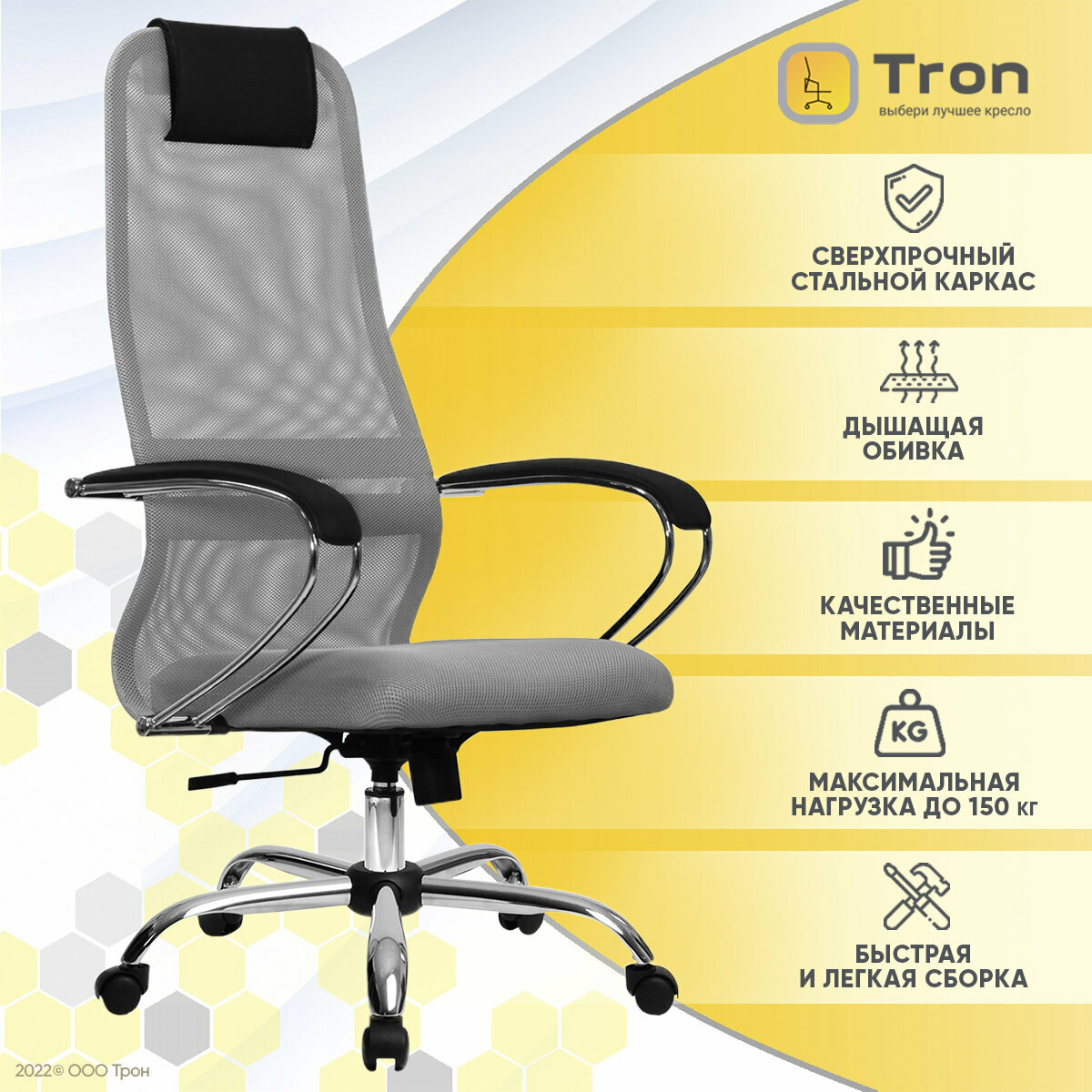 Кресло руководителя Метта SU-B-8/подл.131/осн.003 Светло-серый, сетка
