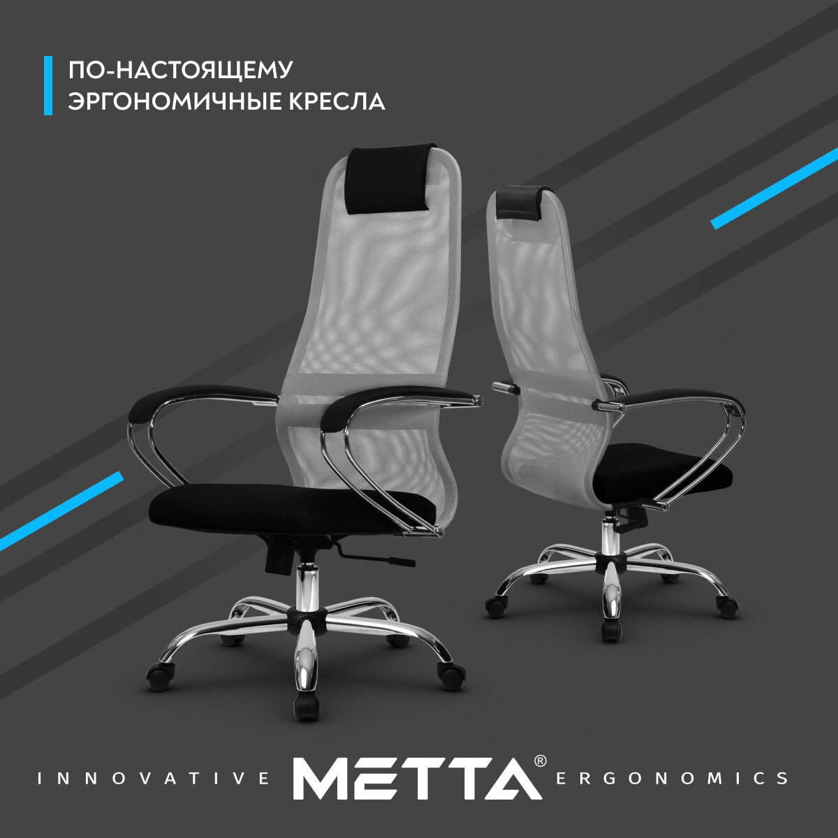 Кресло офисное метта "SU-B-8" хром, ткань-сетка, сиденье мягкое