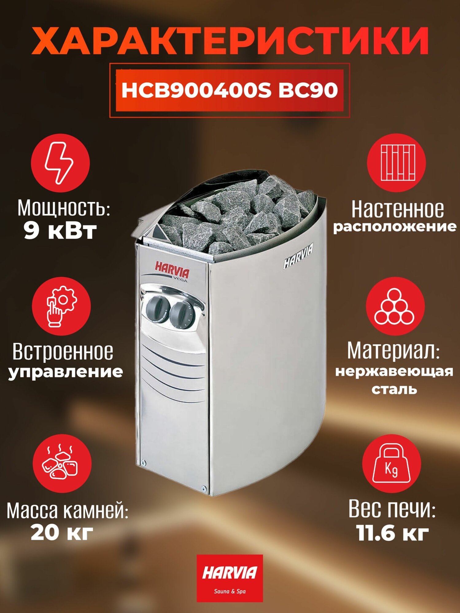 Электрическая печь HARVIA Vega HCB900400S BC90 со встроенным пультом, артикул HCB900400S