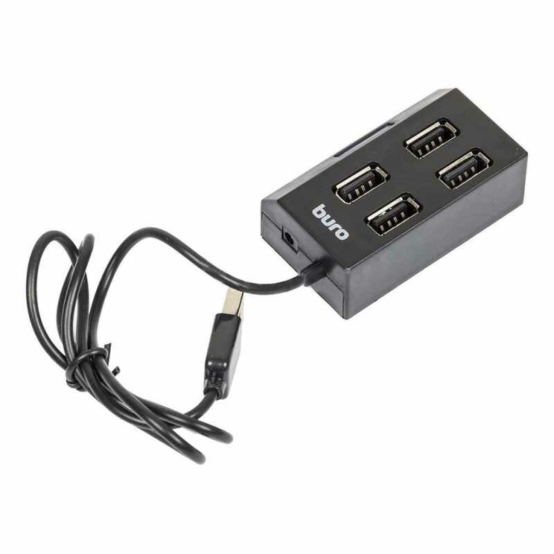 Разветвитель USB 2.0 Buro BU-HUB4-U2.0 4порт. черный, 1597910