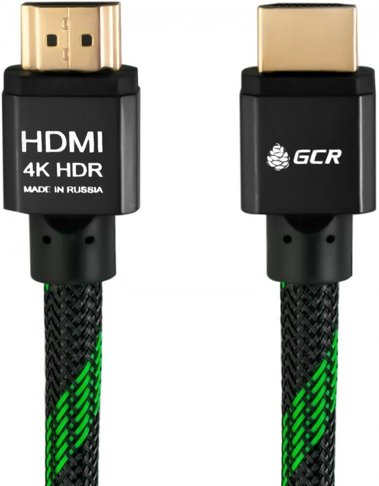 HDMI кабель 1.5м GCR Ultra HD 4K 3D 18 Гбит/с частично нейлон 24K GOLD черно-зеленый для компьютера