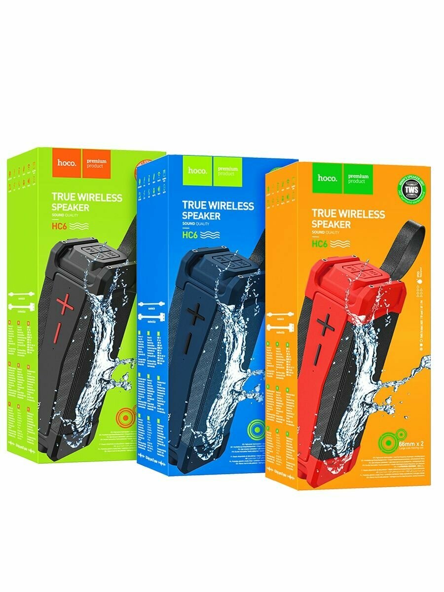 Беспроводная стерео колонка HOCO HC6 4000mAh, TWS, BT 5.0, U-disk, TF, FM, Waterproof IPX5, Черный
