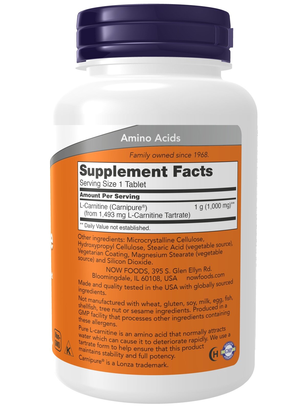 Купить NOW Foods, L-карнитин, 1000 мг, 100 таблеток