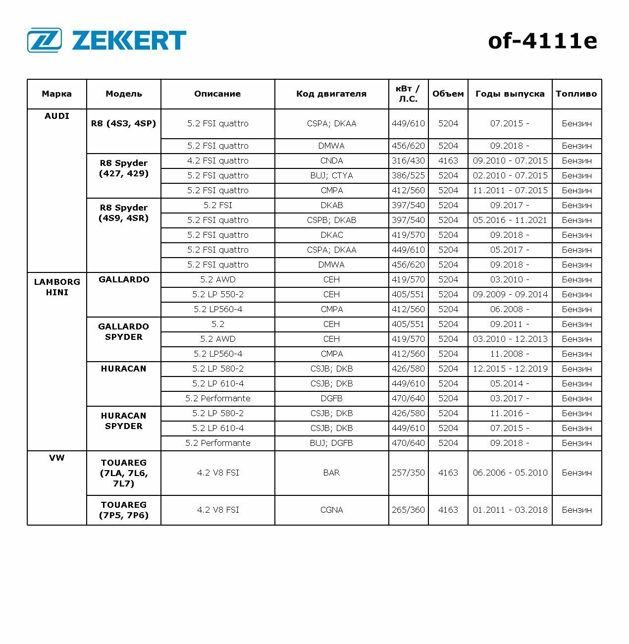 СохранитьOF4111E ZEKKERT Фильтр масл. Eco Audi A5 07- A6 III 06- A8 II III 06- Q7 06- VW Touareg I II 06- интересное: