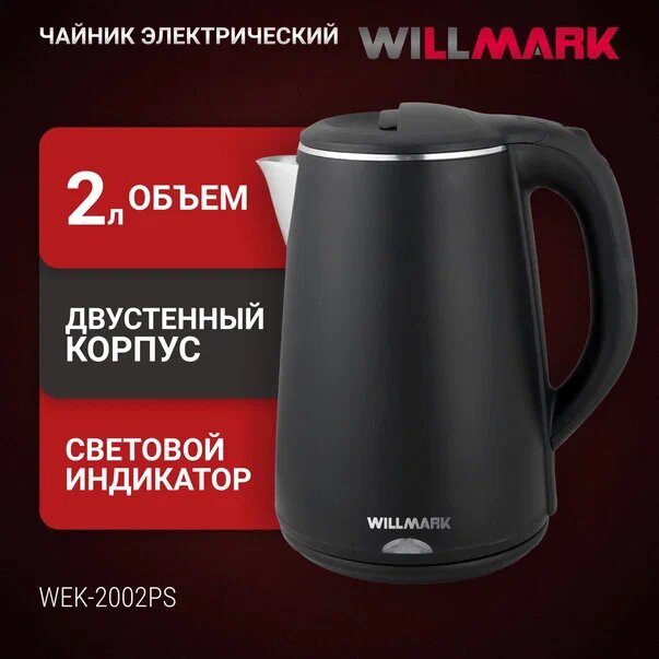 Чайник WILLMARK WEK-2002PS двойные стенки черный