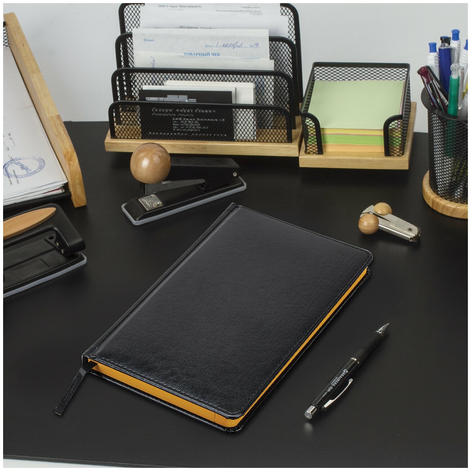 Купить Ежедневник недатированный А5 138x213 мм BRAUBERG "Rainbow", под кожу, 136 л., черный/желтый, 113497 Комплект : 1 шт .