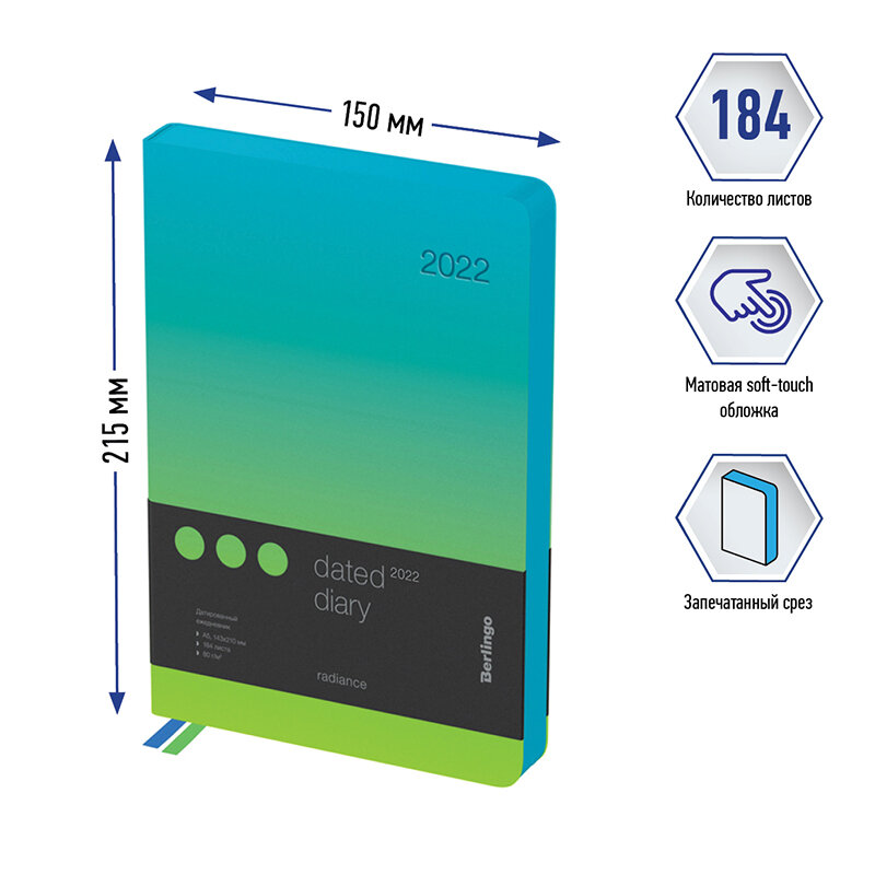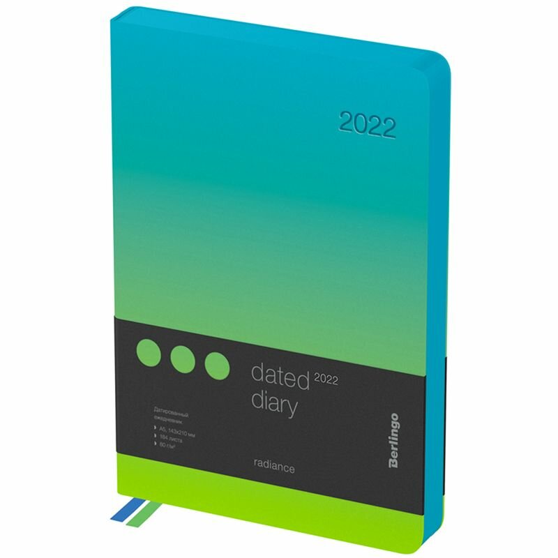 Купить Ежедневник датированный на 2022 год, Radiance, А5, 184 листа, зеленый/голубой