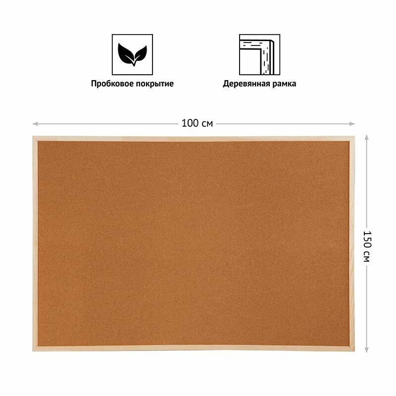 Доска пробковая OfficeSpace 100х150 см, деревянная рамка (KK_26825)