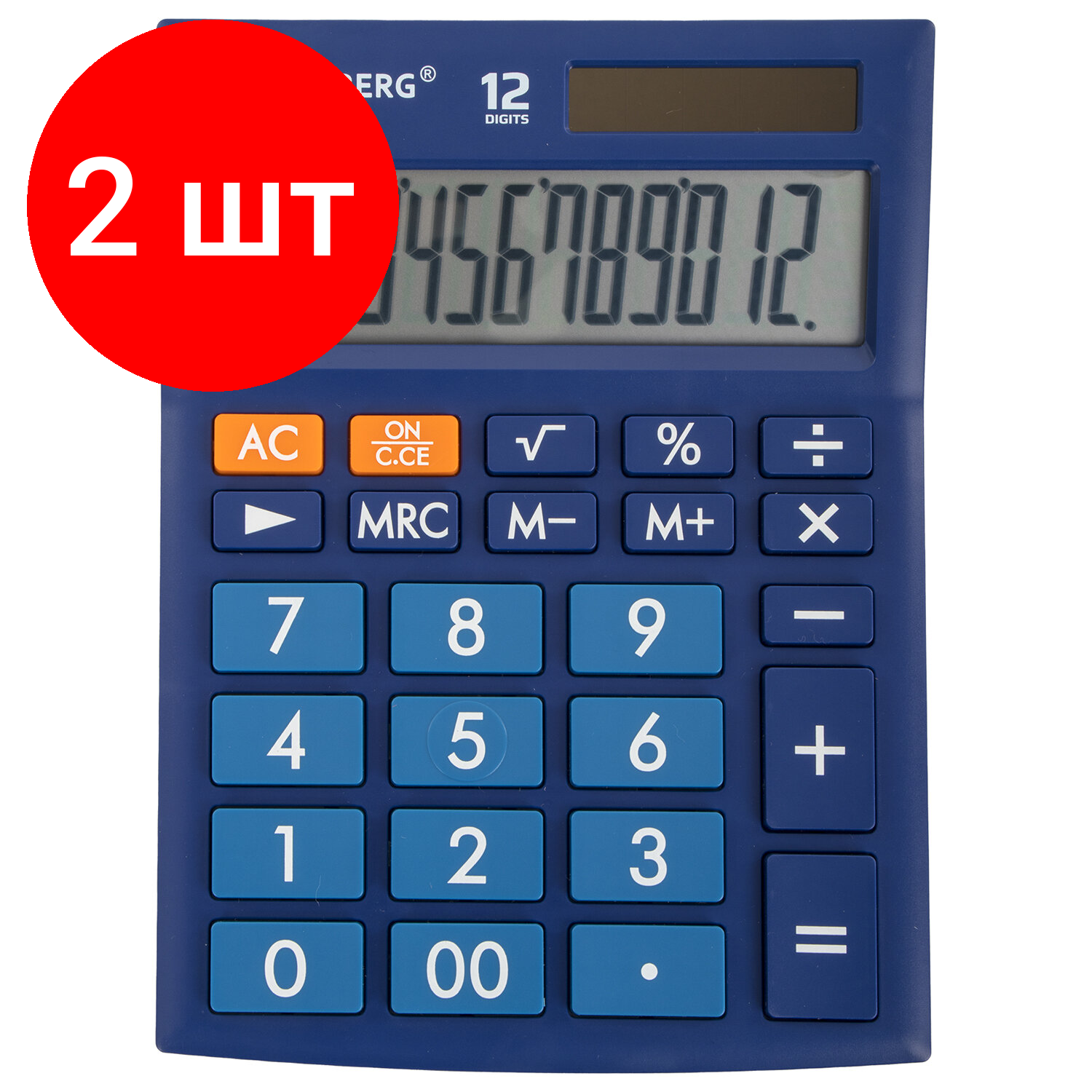 Купить Комплект 2 шт, Калькулятор настольный BRAUBERG ULTRA-12-BU (192x143 мм), 12 разрядов, двойное питание, синий, 250492