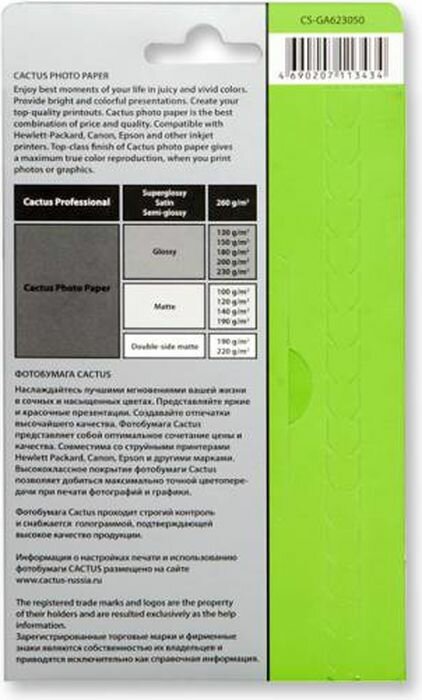Фотобумага для принтера Cactus CS-GA623050ED