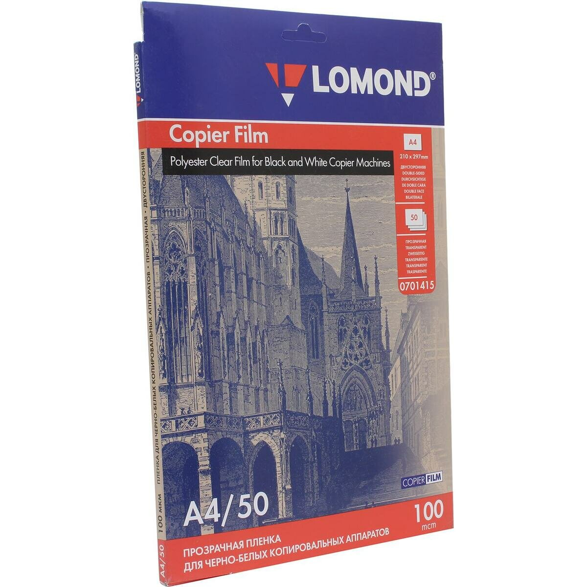 Пленка для черно-белых копировальных аппаратов Lomond А4 прозрачная, двусторонняя (50 листов) 100 мкм (0701415)
