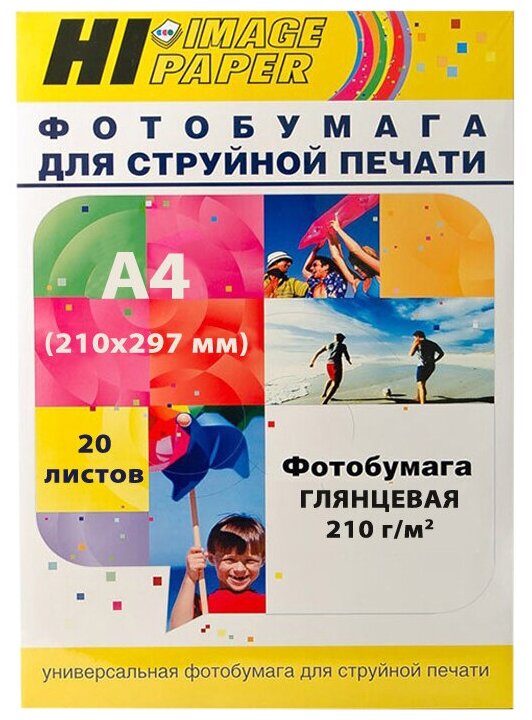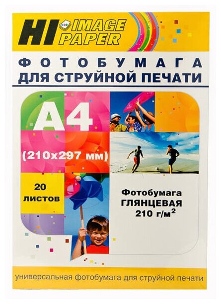 Фотобумага универсальная 210x297мм (А4), глянцевая, 210г/м2, 20 листов, Hi-Image (Hi-Black), H210-A4-20