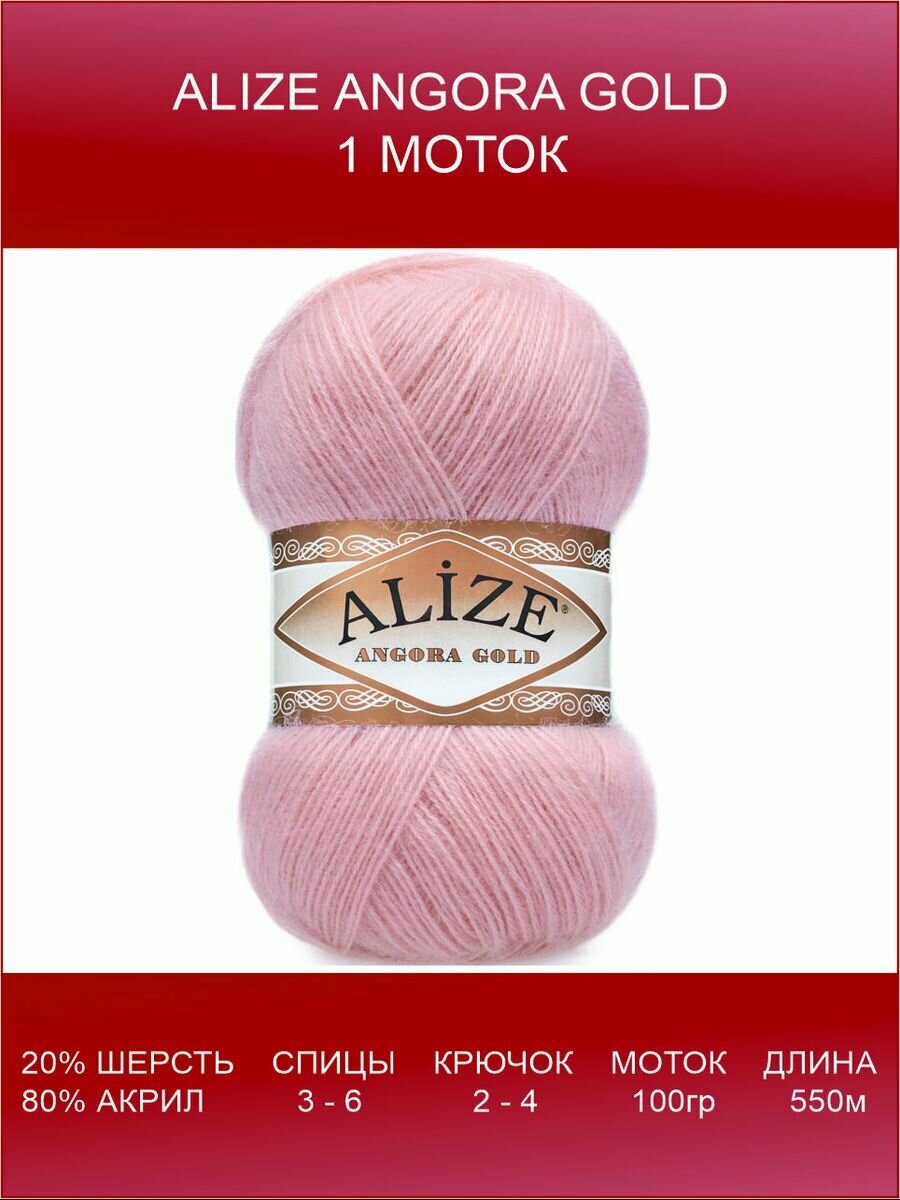 Пряжа ALIZE Angora Gold, пудра - 161, 20% шерсть, 80% акрил, 5 мотков, 100 г., 550 м.