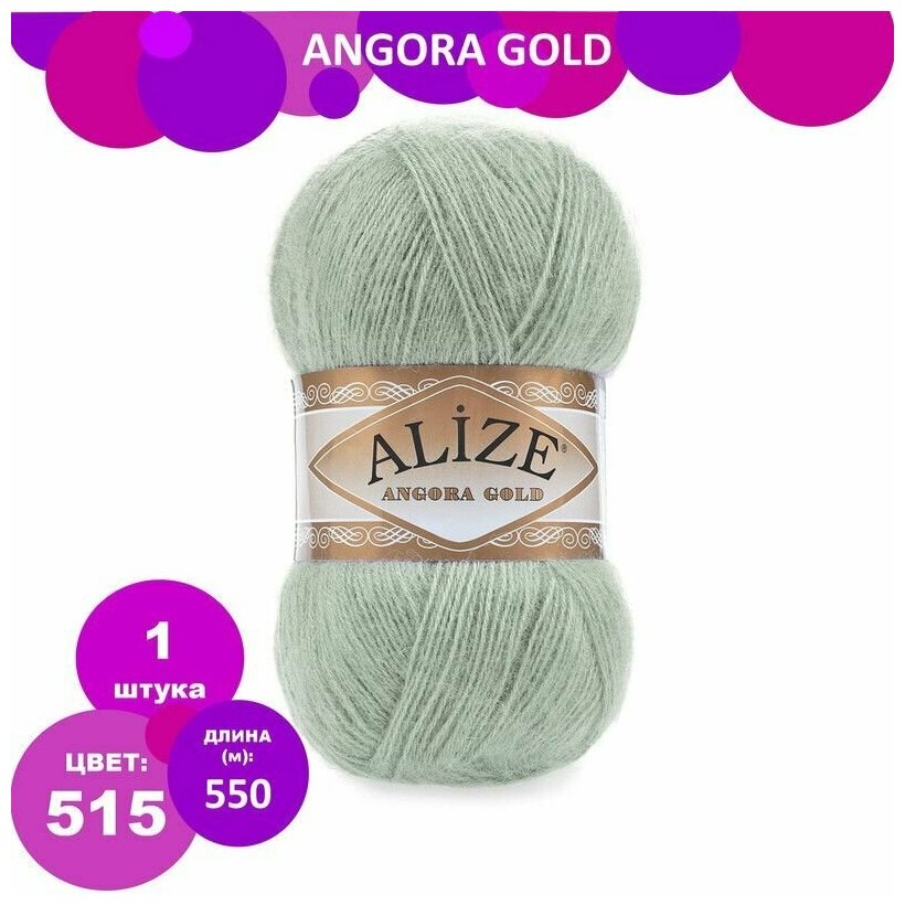 Пряжа Alize Angora Gold (Ангора Голд) - 5 мотков Цвет: 267 пастельно-зеленый 20% шерсть, 80% акрил 100г 550м