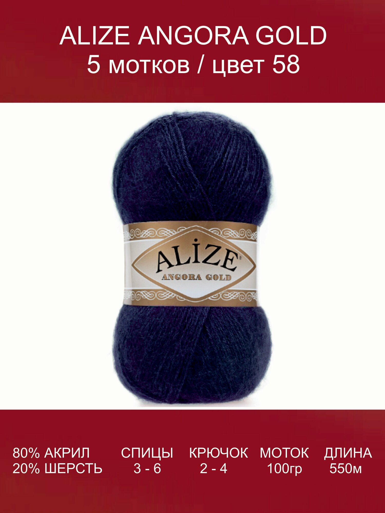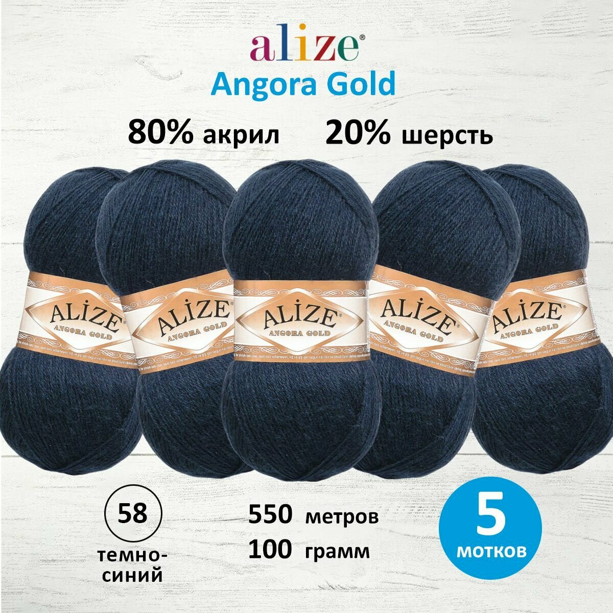 Купить Пряжа Alize Angora Gold темно-синий (58), 80%акрил/20%шерсть, 550м, 100г, 5шт