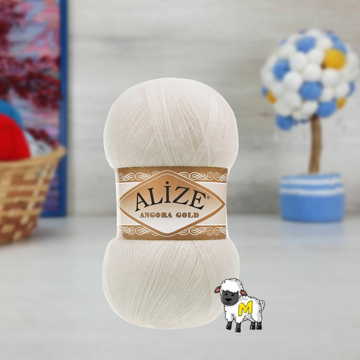 Пряжа для вязания Alize Angora Gold, цвет 599 слоновая кость, 100г, 550м, 5шт/упак