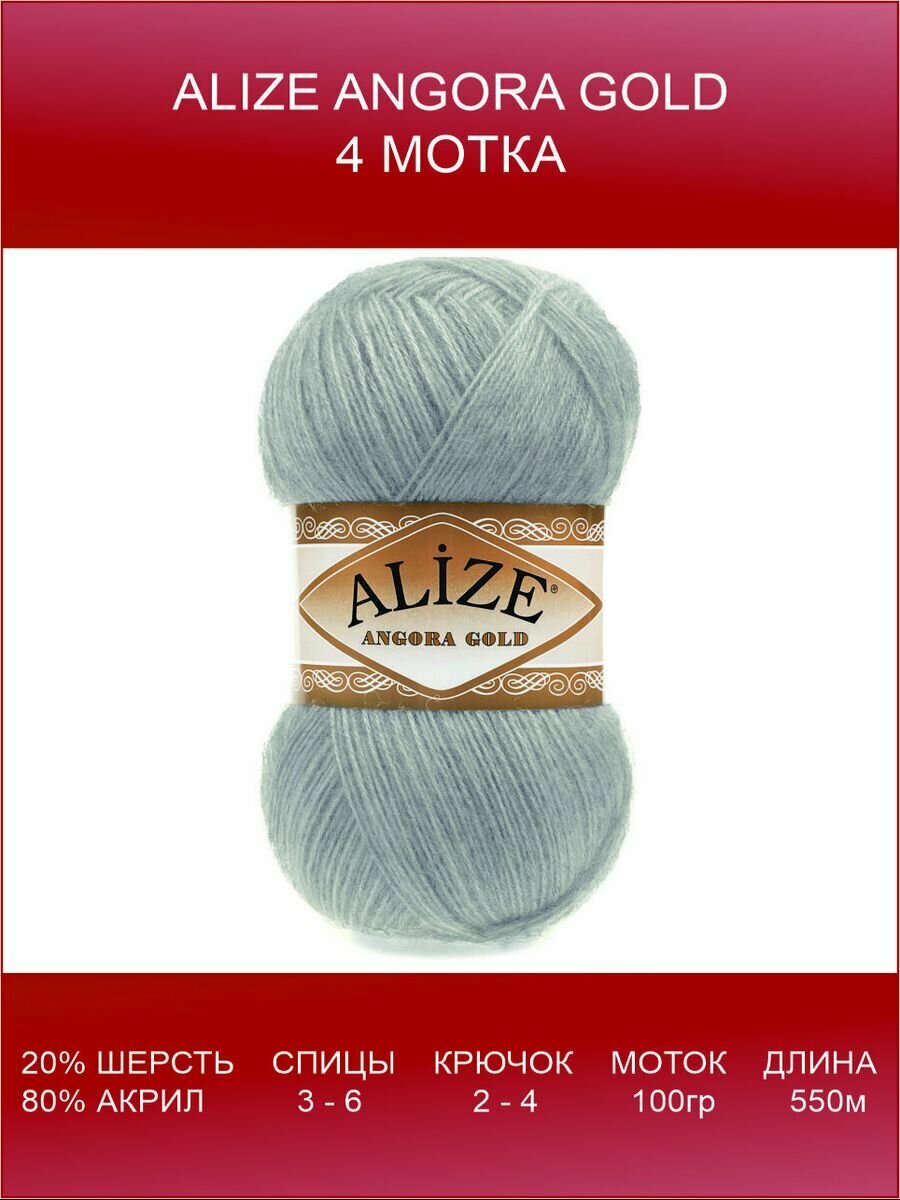 Пряжа Alize Angora Gold | Турция | 5шт упаковка | Акрил: 80%, Шерсть: 20%