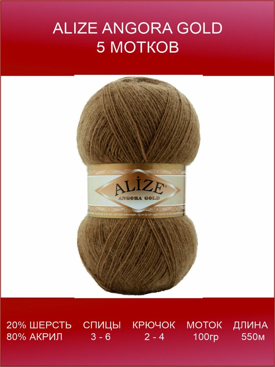 Купить Пряжа для вязания ALIZE 'Angora Gold' 100 г, 550 м (80% акрил, 20% шерсть) ТУ (466 тёмно-бежевый), 5 мотков