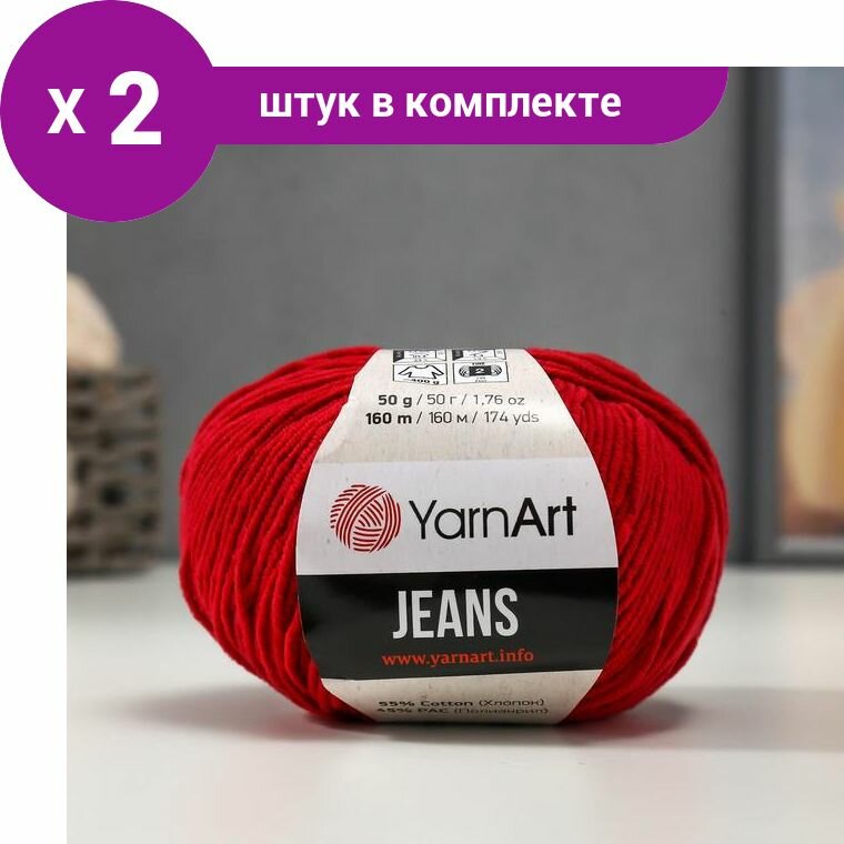 Пряжа YarnArt Jeans красный (0026), 55%хлопок/45%акрил, 160м, 50г, 1шт