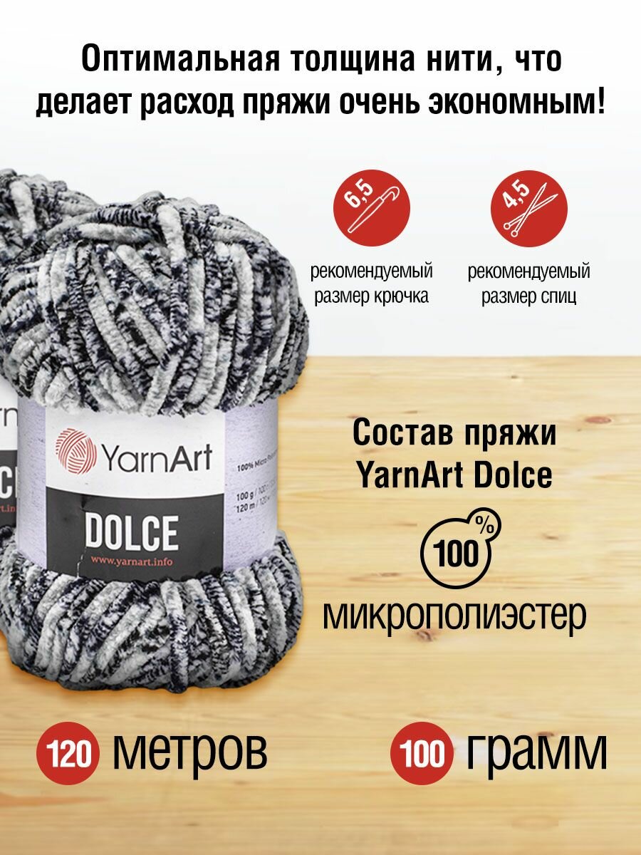 Пряжа YarnArt Dolce черно-белый (801), 100%микрополиэстер, 120м, 100г, 3шт