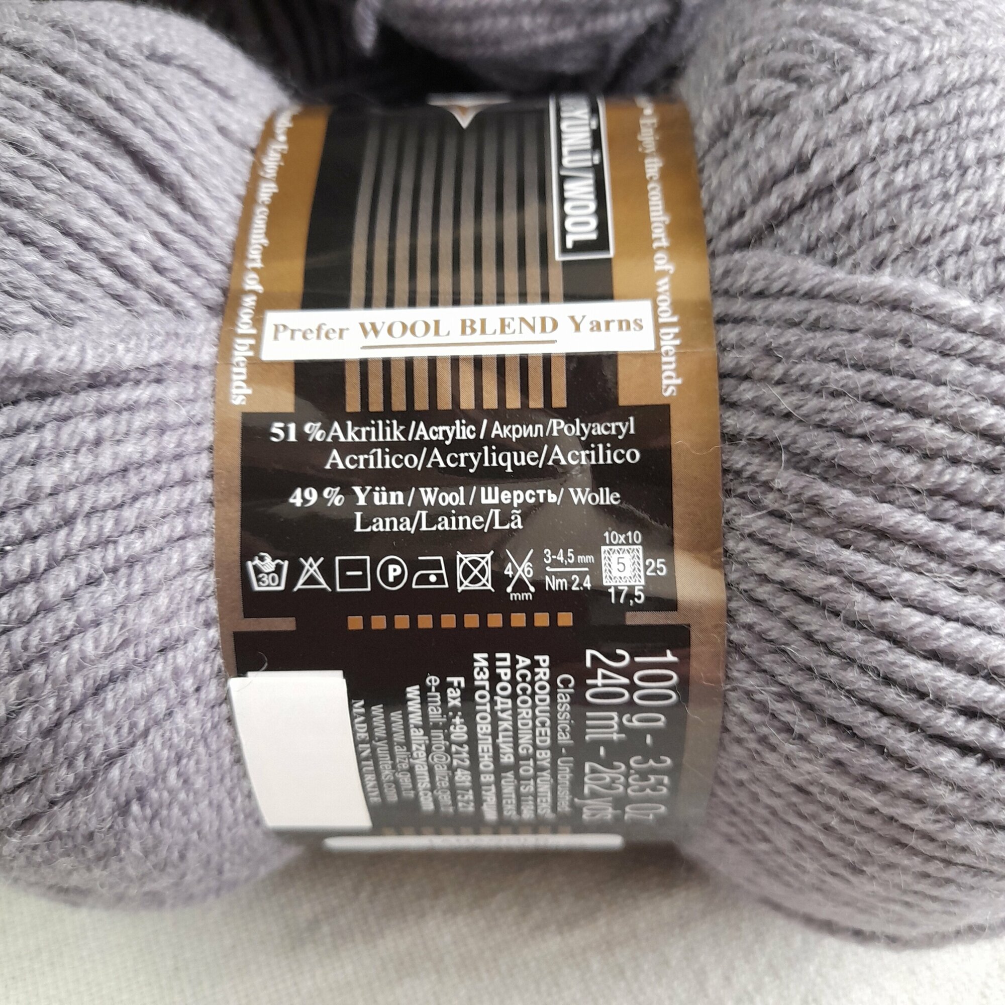 Пряжа Alize Lanagold (Ланаголд) цвет 505 пепельно-сиреневый 49% шерсть, 51% акрил 100г 240м 5шт