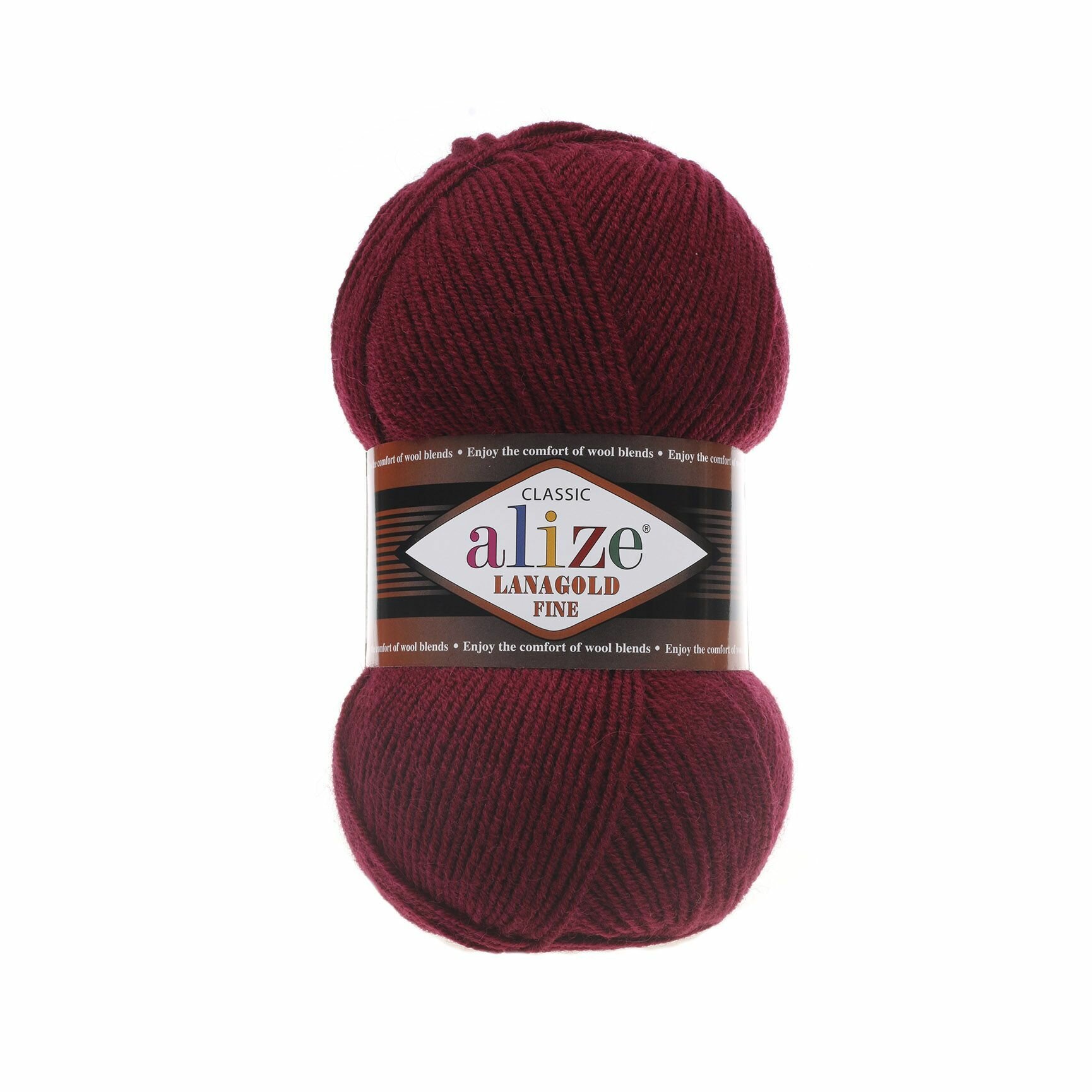 Пряжа Alize Lanagold Fine (Ализе Ланаголд Файн) - 1 моток, 57 бордовый, 49% шерсть, 51% акрил 390м/100г