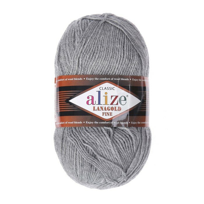 Пряжа Alize Lanagold Fine (Ланаголд Файн) - 1 шт Цвет: 348 серый 49% шерсть, 51% акрил 100г 390м