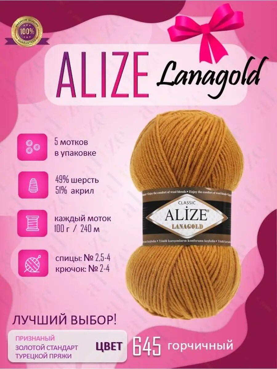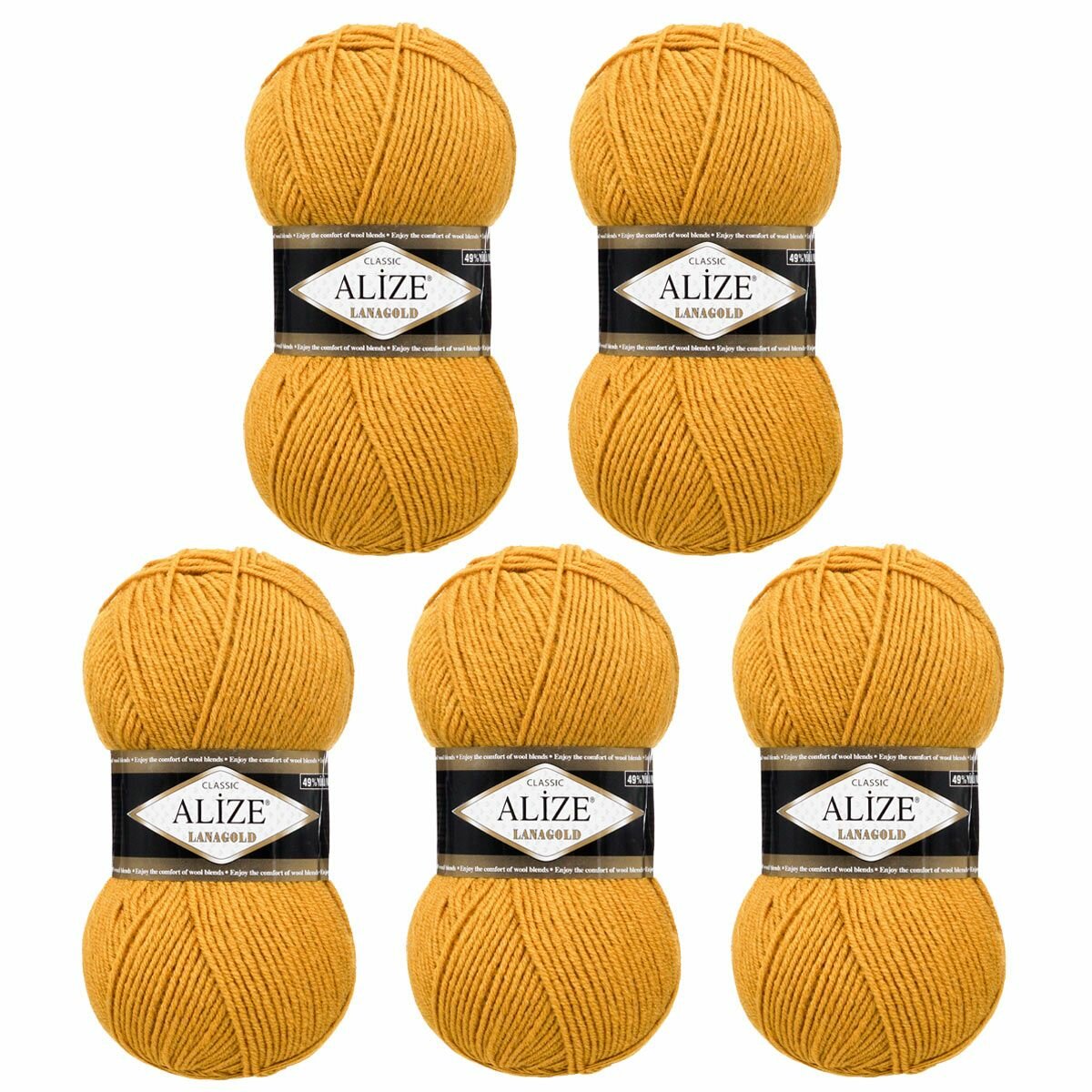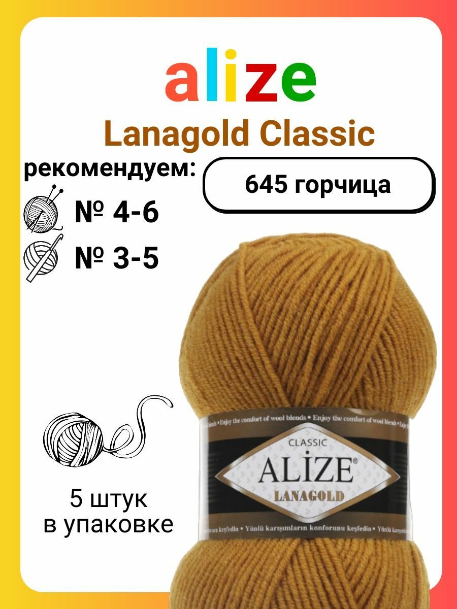 Купить Пряжа Alize Lanagold горчичный (645), 51%акрил/49%шерсть, 240м, 100г, 5шт