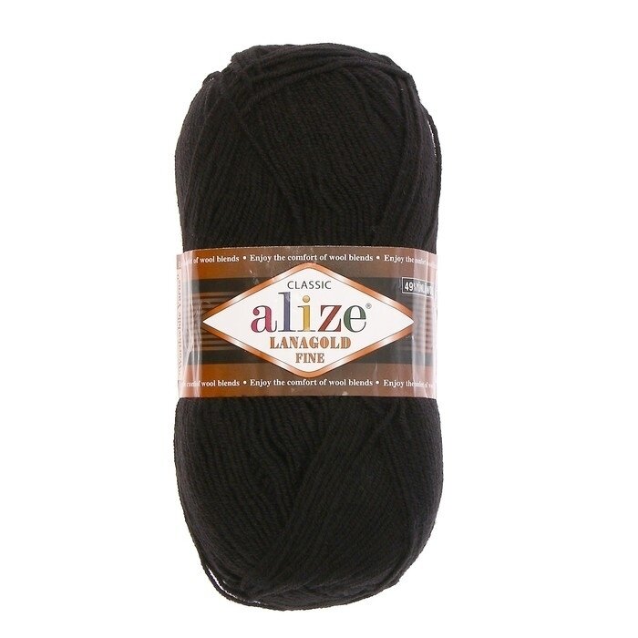 Купить Пряжа Alize Lanagold Fine черный (60), 51%акрил/49%шерсть, 390м, 100г, 1шт