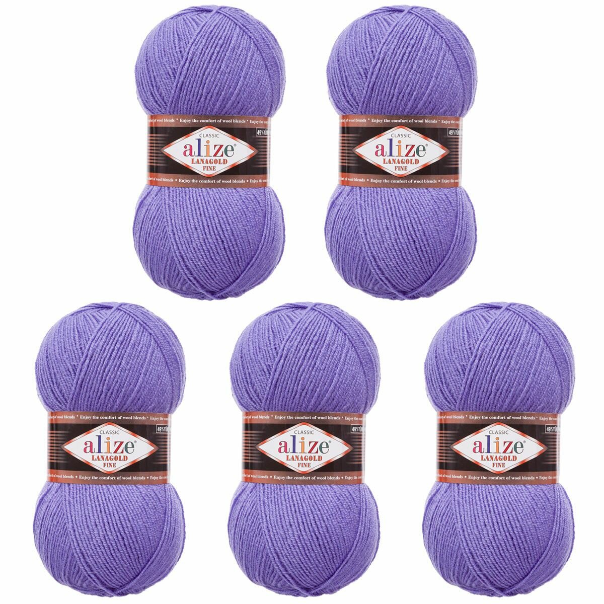 Пряжа для вязания ALIZE LANAGOLD FINE: 166 (лиловый), 5 шт 390 м 100 г, 49% шерсть 51% акрил