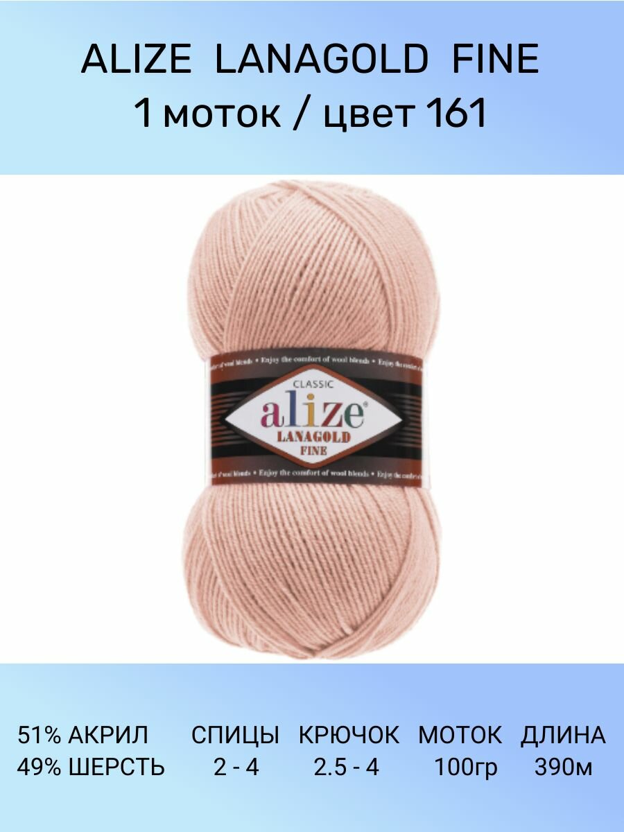 Пряжа Alize Lanagold Fine (Ализе Ланаголд Файн) - 1 моток, 161 пудра, 49% шерсть, 51% акрил 390м/100г