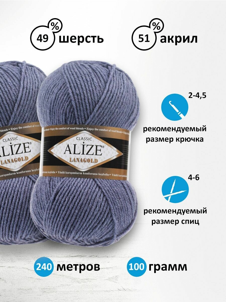 Пряжа для вязания ALIZE 'Lanagold', 100г, 240м (49% шерсть, 51% акрил) (203 джинса), 5 мотков