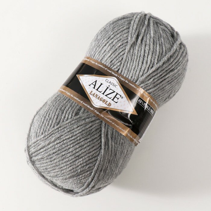 СохранитьПряжа Alize Lanagold (Ализе Ланаголд) - 5 мотков 21 серый меланж 49% шерсть, 51% акрил 240м/100г интересное: