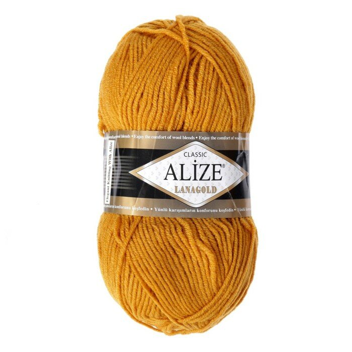 Пряжа Alize Lanagold (Ланаголд) медовый 680, 49% шерсть, 51% акрил 100г 240м 5шт