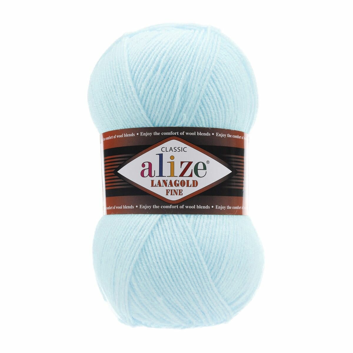 Пряжа для вязания ALIZE LANAGOLD FINE: 40 (голубой), 3 шт 390 м 100 г, 49% шерсть 51% акрил
