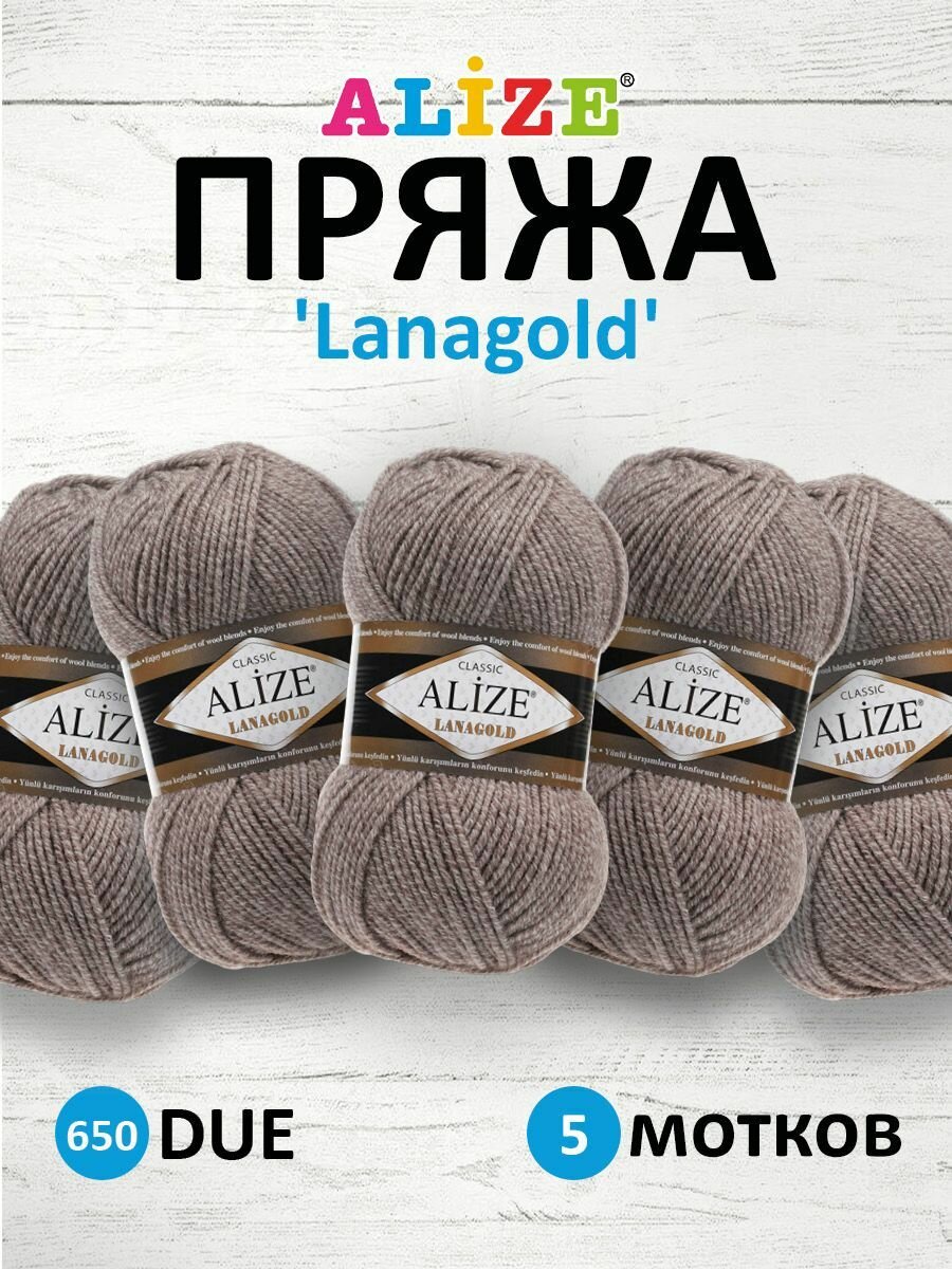 Пряжа Alize Lanagold (Ланаголд) 466 темно-бежевый 100г 240м 5шт