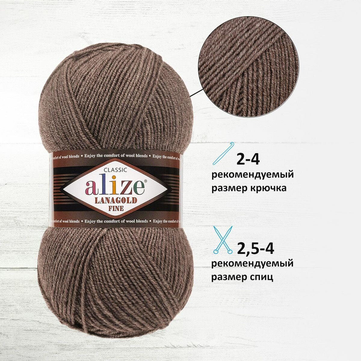 Пряжа для вязания ALIZE LANAGOLD FINE: 240 (коричневый меланж), 3 шт 390 м 100 г, 49% шерсть 51% акрил