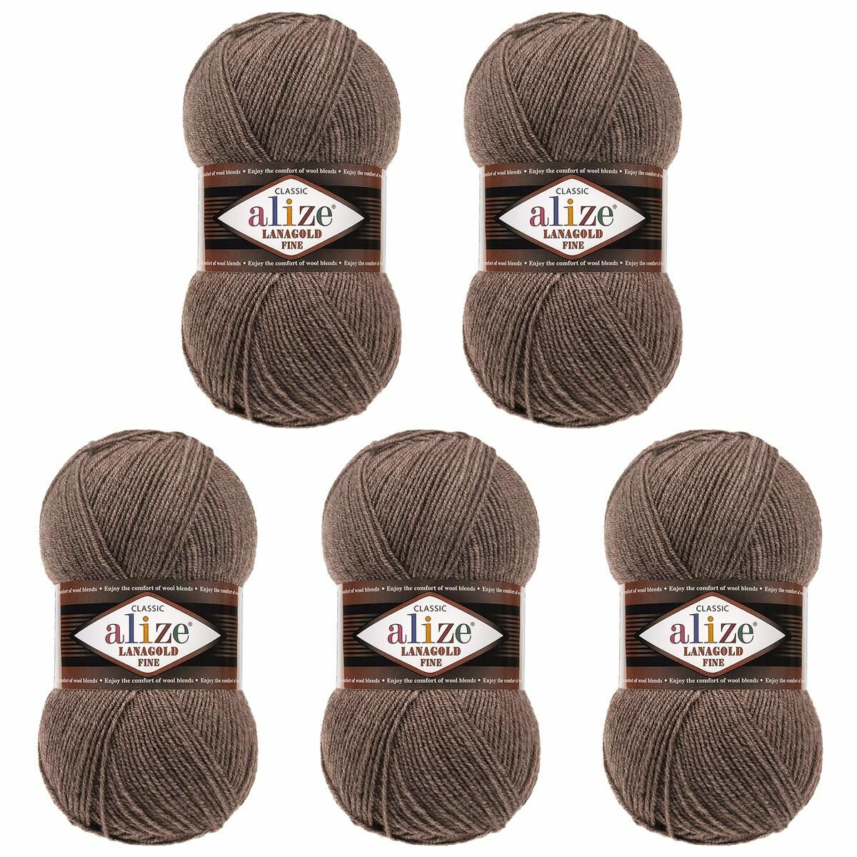 Пряжа для вязания ALIZE LANAGOLD FINE: 26 (темно-коричневый), 5 шт 390 м 100 г, 49% шерсть 51% акрил