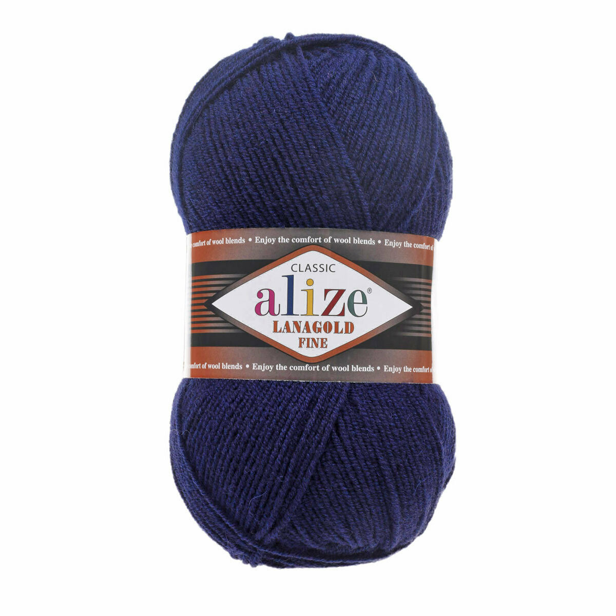 Пряжа для вязания ALIZE LANAGOLD FINE: 58 (т.синий), 3 шт 390 м 100 г, 49% шерсть 51% акрил