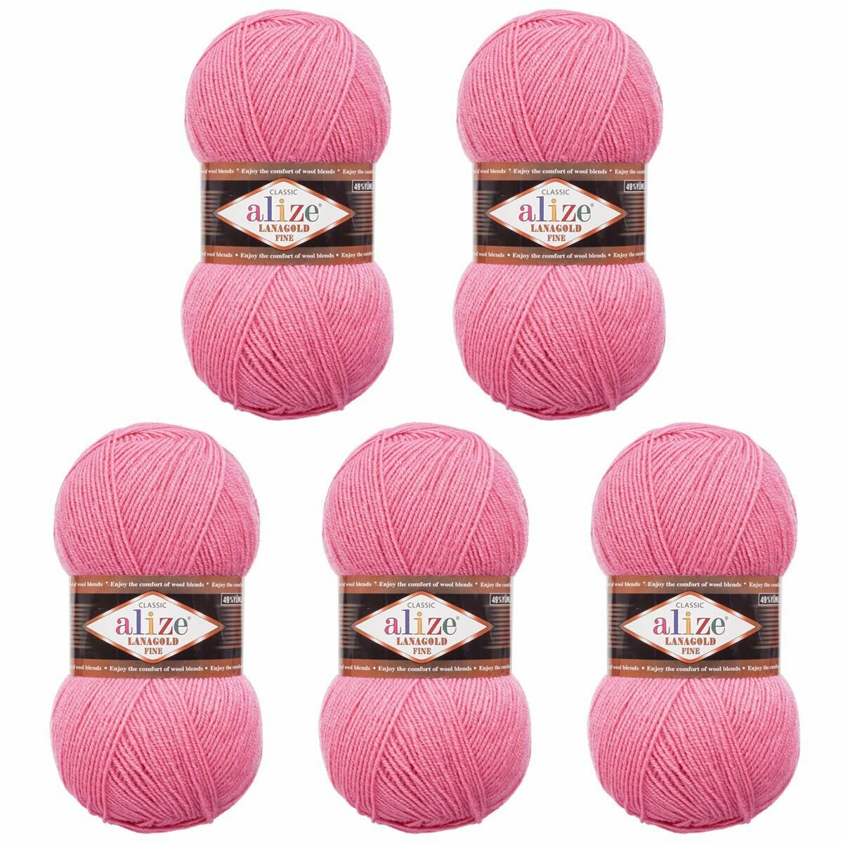 Пряжа для вязания ALIZE 'Lanagold fine', 100г, 390м (49% шерсть, 51% акрил) (178 тёмно-розовый), 5 мотков
