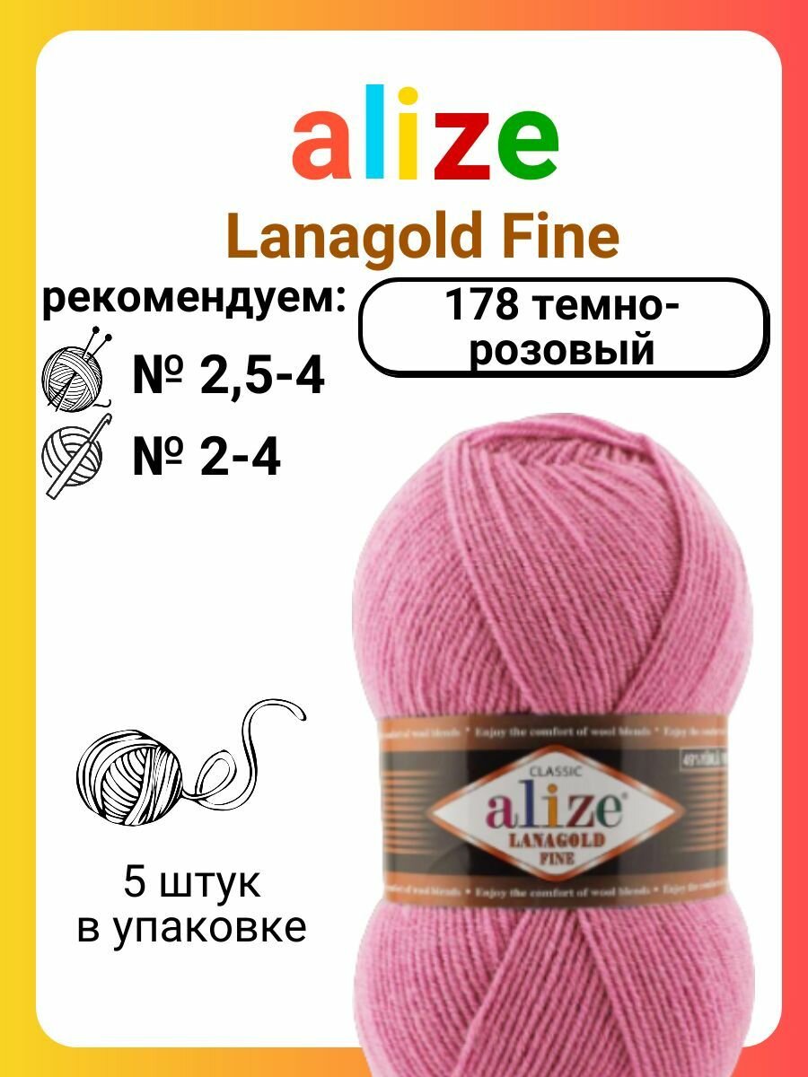 Купить Пряжа Alize Lanagold Fine темно-розовый (178), 51%акрил/49%шерсть, 390м, 100г, 5шт