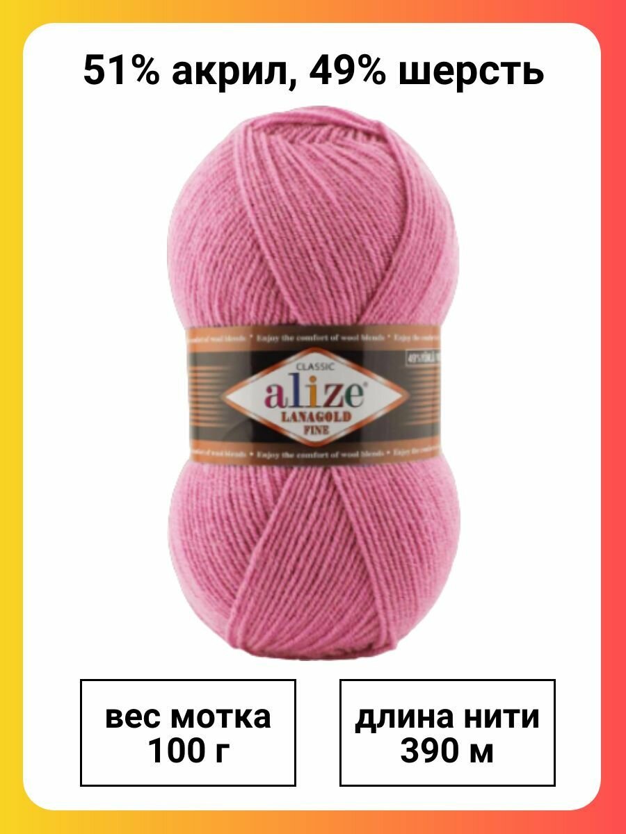 Пряжа Alize Lanagold Fine (Ланаголд Файн) - 1 моток Цвет: 178 темно-розовый 49% шерсть, 51% акрил 100г 390м